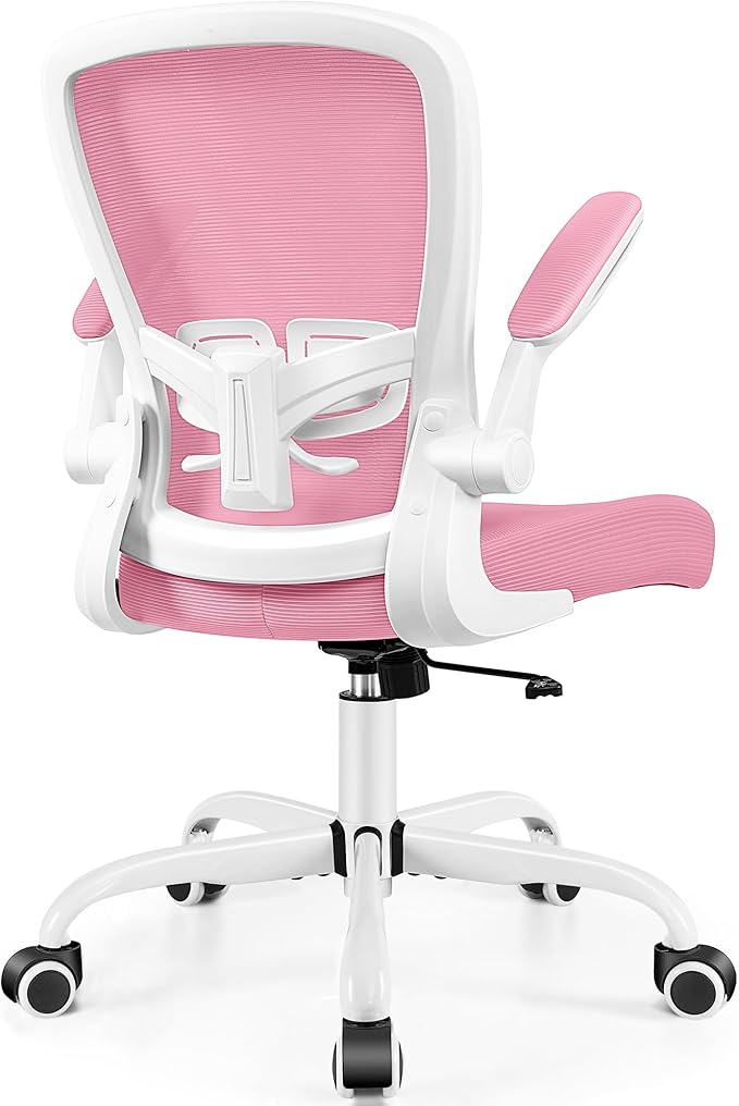 MINLOVE Office Chair Ergonomic Desk Chair with Adjustable Lumbar Support and Height, 90° Flip-up Armrests, Ergo Desk Chairs with Wheels, Home Work Use (Pink)
