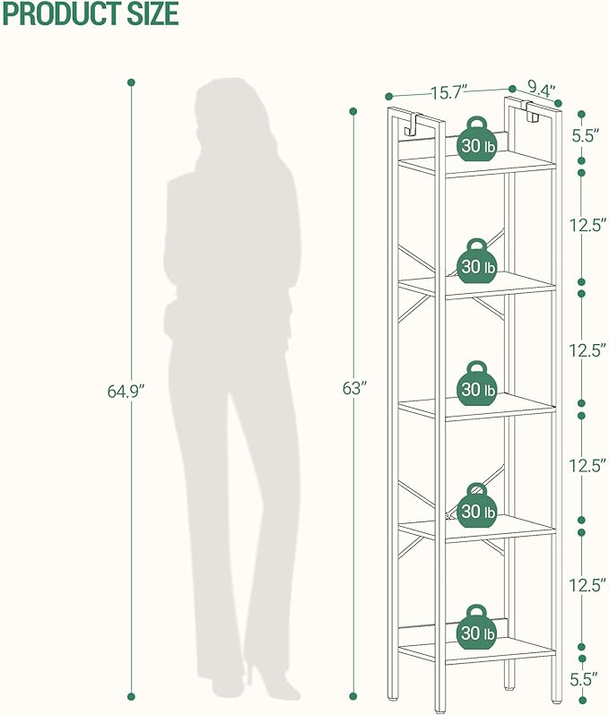 About This [Space-Saving for Any Room] This 9.5"D x 15.7"W x 63"H narrow bookshelf occupies little floor space yet offers...