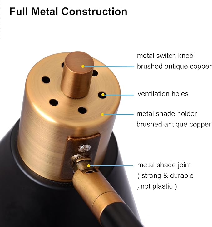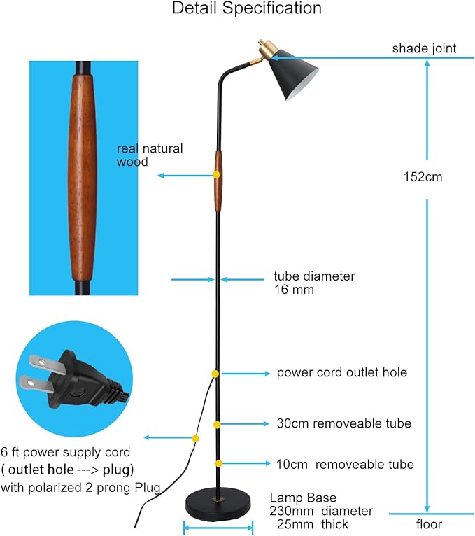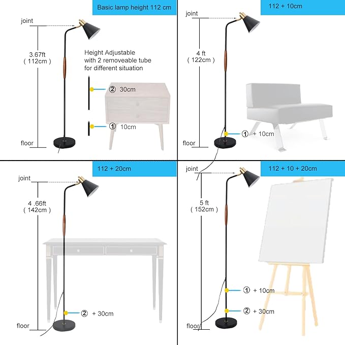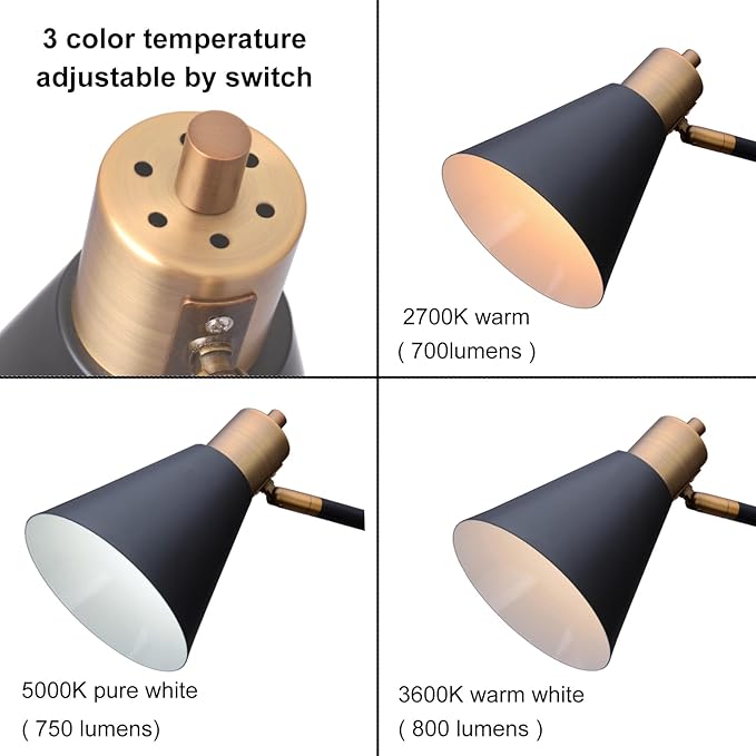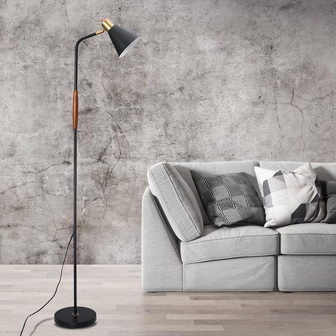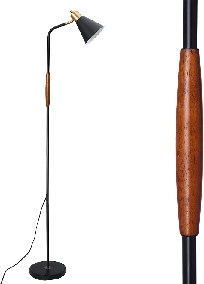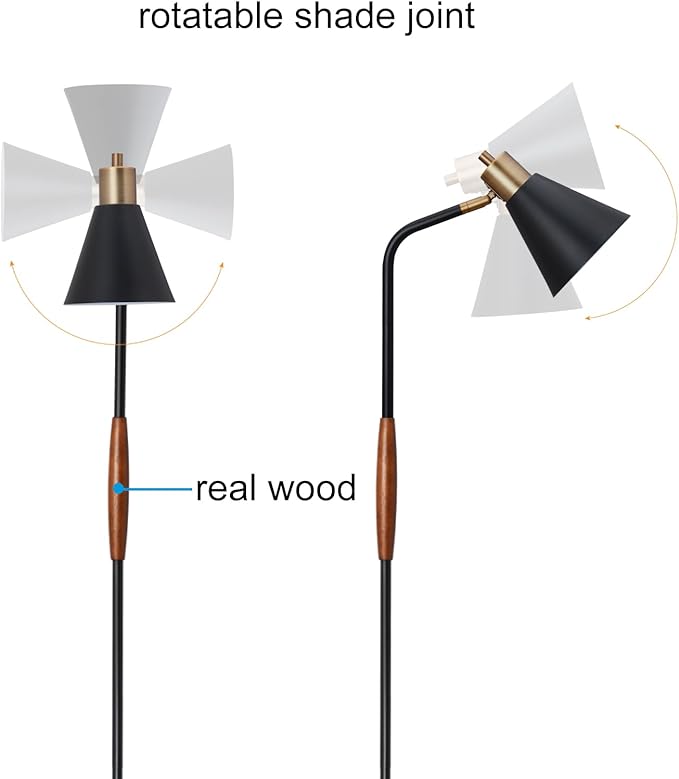 NIOSTA Height Adjustable Reading Floor Lamp,Industrial Modern Style,360 Degree Rotatable,Black & Brushed Copper Finsh, 3 Color Temperature (Black+Wood)