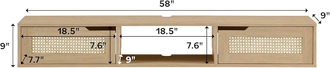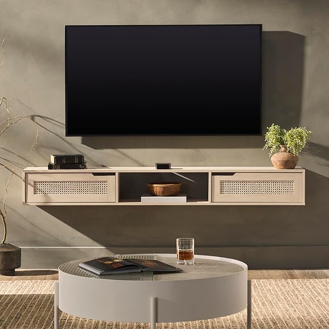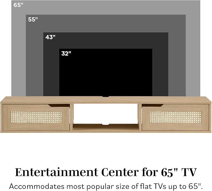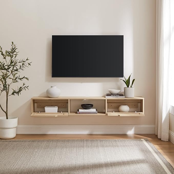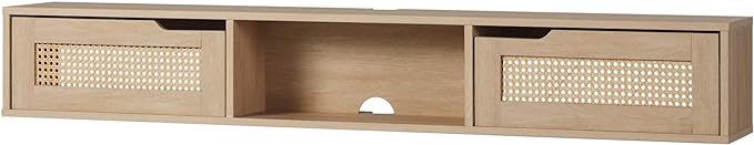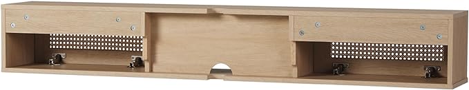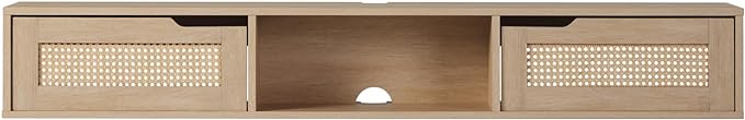 Walker Edison Modern Rattan Flip-Down-Door Wall-Mounted Floating Stand for TVs up to 65 Inche, 58 Inch, Coastal Oak