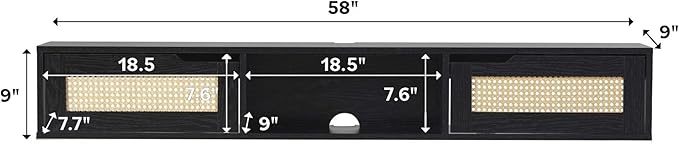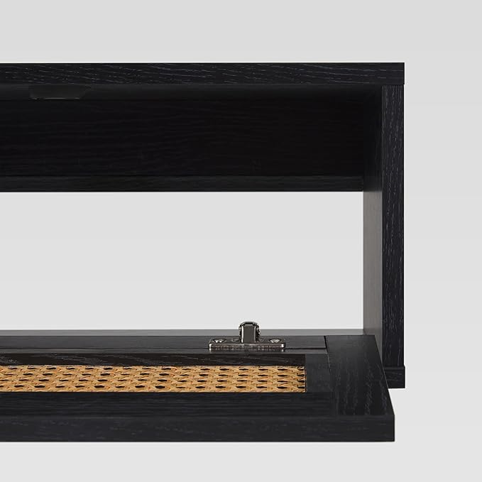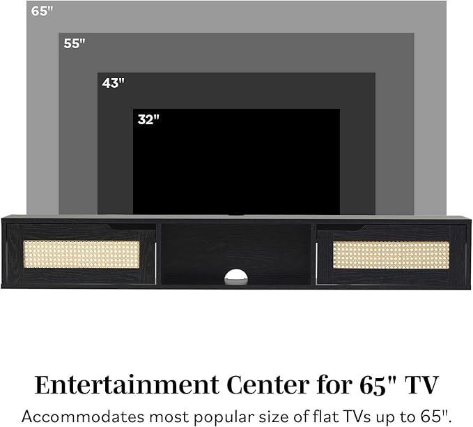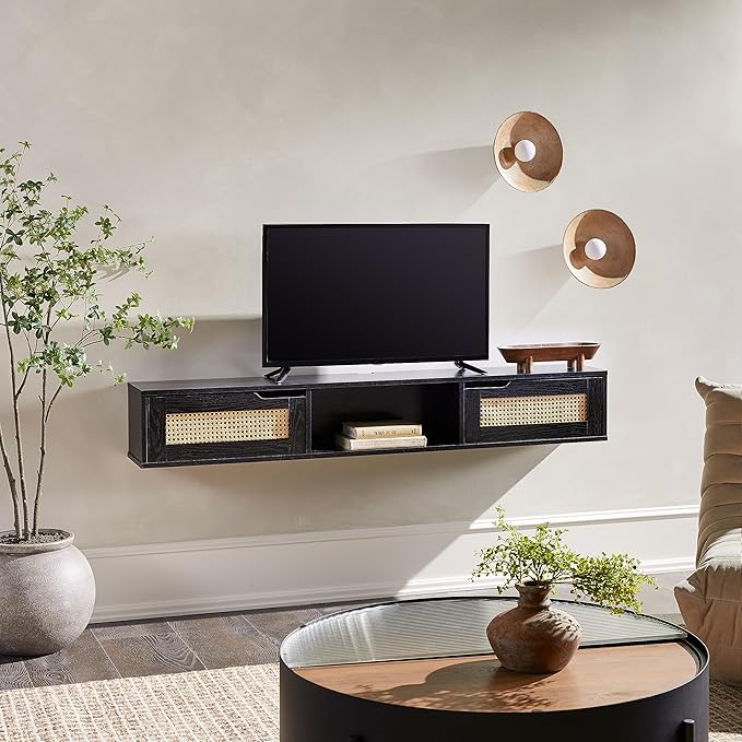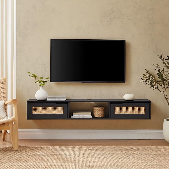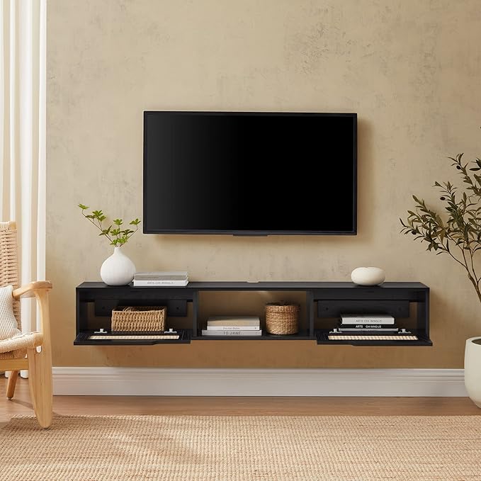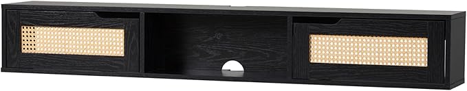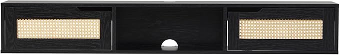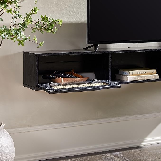 Walker Edison Modern Rattan Flip-Down-Door Wall-Mounted Floating Stand for TVs up to 65 Inche, 58 Inch, Black