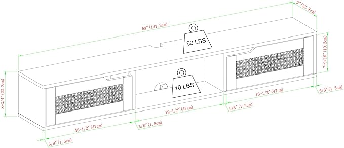 About This Modern, coastal aesthetic Made with warp-resistant MDF, durable laminate, and faux rattan Stylish finger-pull door openings Surface supports...