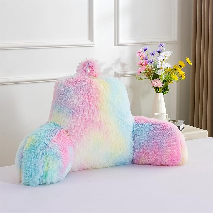 Aimuan Reading Pillow Bed Rest Wedge Large Adult Backrest Pillow with Arms Back Support for Sitting Up in Bed Cushion Incline Rest Sleeping Snoring Pillow, Light-Pink, Large