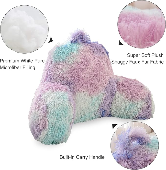 Aimuan Reading Pillow Bed Rest Wedge Large Adult Backrest Pillow with Arms Back Support for Sitting Up in Bed Cushion Incline Rest Sleeping Snoring Pillow, Blue-Purple, Large