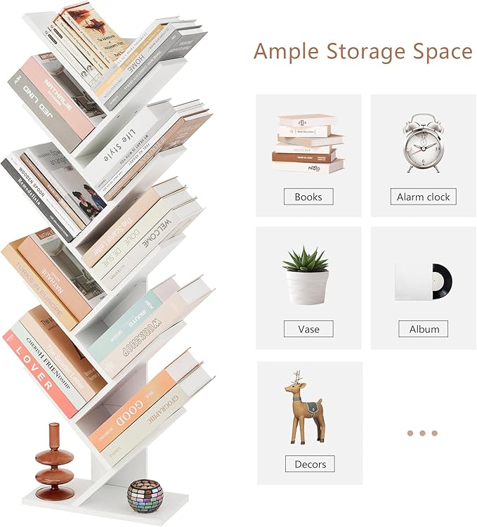 About This 【Multifunctional & Multi-Scene】The white tree bookcase is an old-time classic with a charming vintage look and functional design....