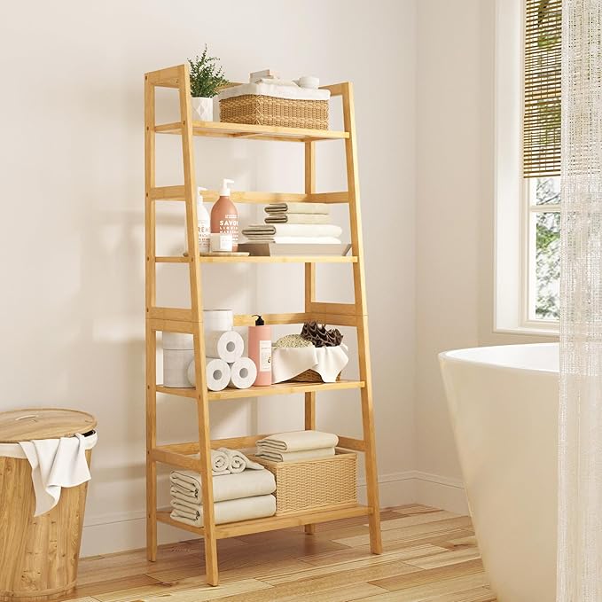 About This š¦ššš¹š¶ššµ š®š»š± š¦š½š®š°š²-š¦š®šš¶š»š“ šš²šš¶š“š»: Our 4-Tier Bamboo Ladder Shelf combines functionality with aesthetics, offering a sleek and space-saving...