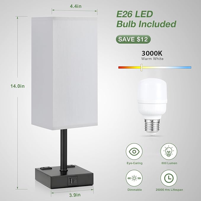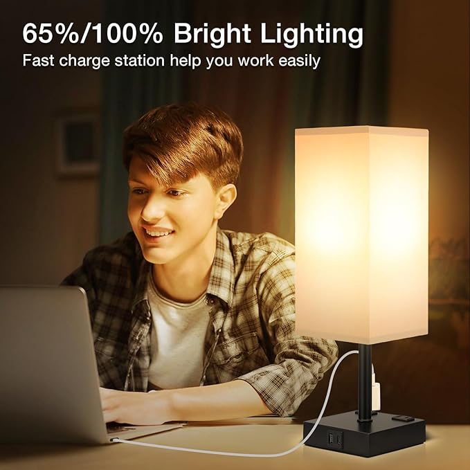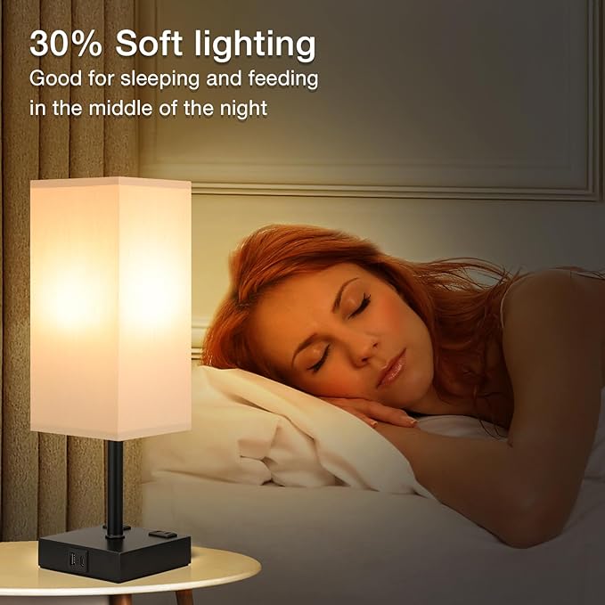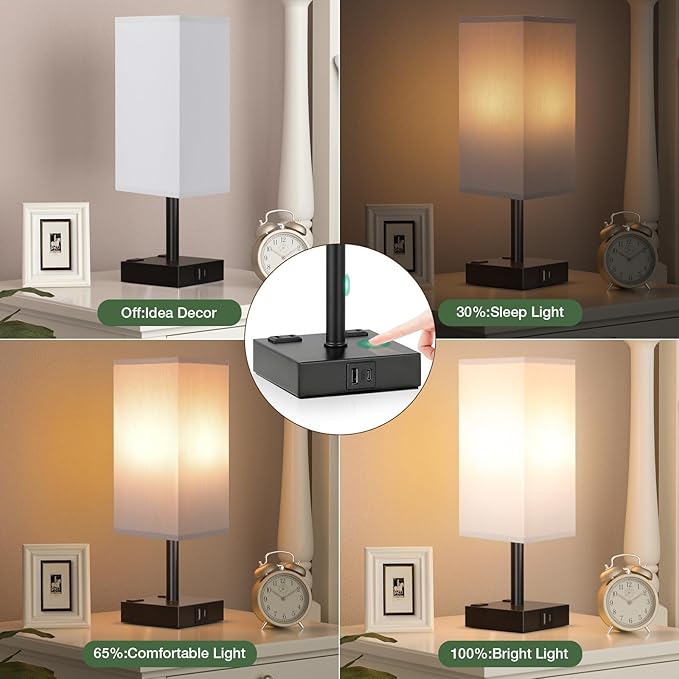 About This 【Touch Lamp with USB Charging Port& AC Outlet】Aooshine nightstand lamp is equipped with USB-C port& USB-A port(5V/2A)and dual...
