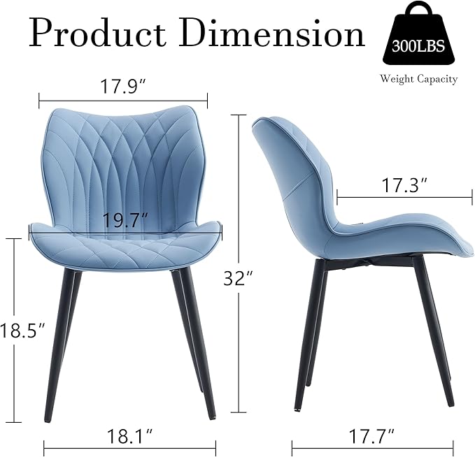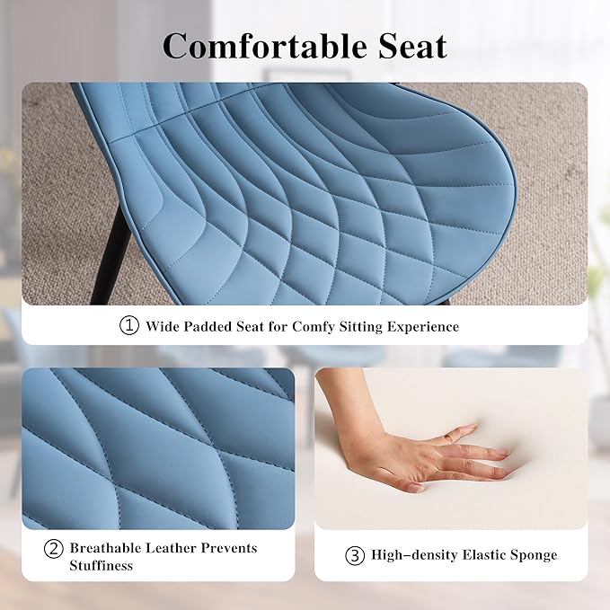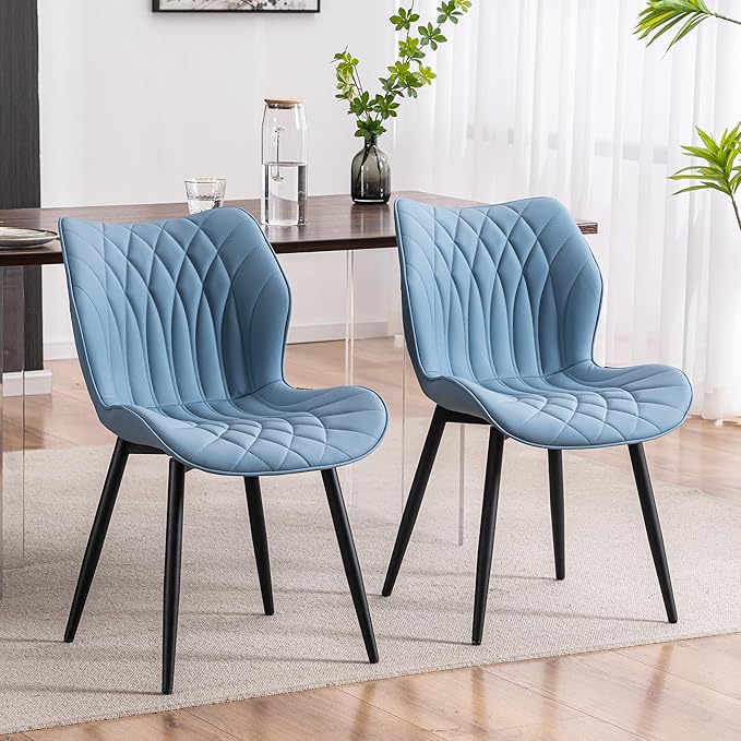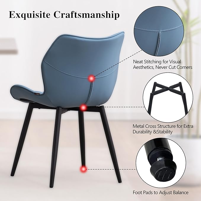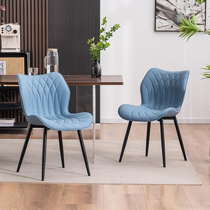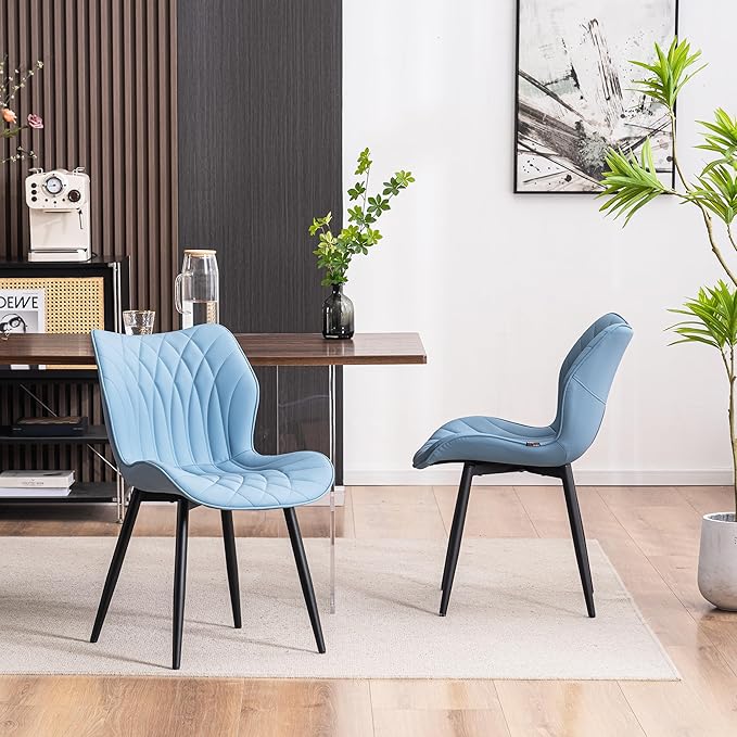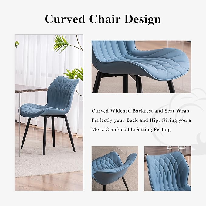 YOUNIKE Dining Chairs Set of 2 Upholstered Faux Leather Dining Room Chairs, Modern Kitchen Chairs Living Room Bedroom Side Chairs with Wide Curved Back and Adjustable Metal Legs, Blue