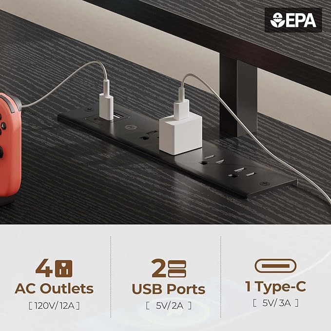 About This Charging Port: The L shaped computer desk have charging station which includes 4-Outlets, 2 USB Ports and 1...