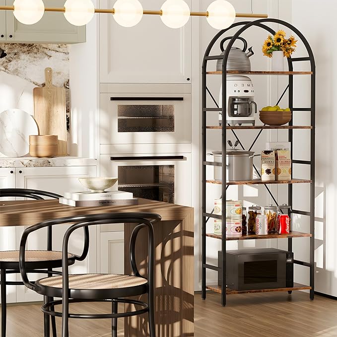 5-Tier Bookshelf, 24 Inch Width Industrial Arched Bookcase, Vintage Storage Rack with Open Shelves, Free Standing Shelf for Home Office, Living Room,Bedroom, Rustic Brown