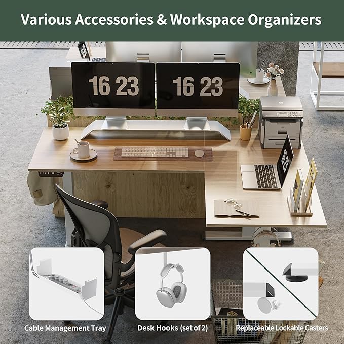 About This Wide desktop space: FEZIBO L shaped standing desk has large desktop space to meet your office needs.63 inch...