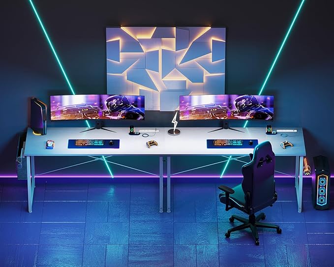 AODK 55 inch Small Computer Desk with Power Outlet for Small Spaces Home Office Student Laptop PC Writing Desks with Storage Bag Headphone Hook, White