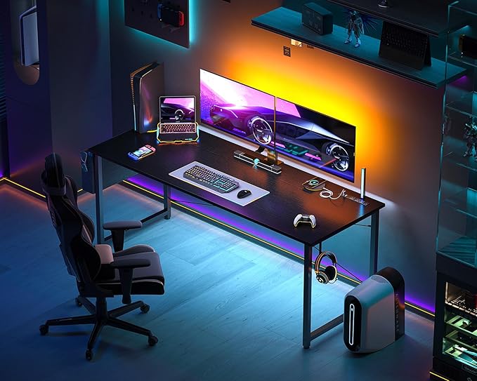 AODK 63 inch Small Computer Desk with Power Outlet for Small Spaces Home Office Student Laptop PC Writing Desks with Storage Bag Headphone Hook, Black