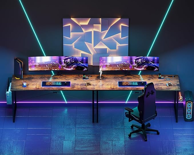 AODK 63 inch Small Computer Desk with Power Outlet for Small Spaces Home Office Student Laptop PC Writing Desks with Storage Bag Headphone Hook, Vintage