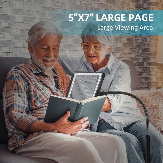 5X Magnifying Glass with Light and Stand, Adjustable Brightness Magnifying Floor Lamp, Gooseneck Arm Lighted Magnifier for Reading, Crafts and Close Work