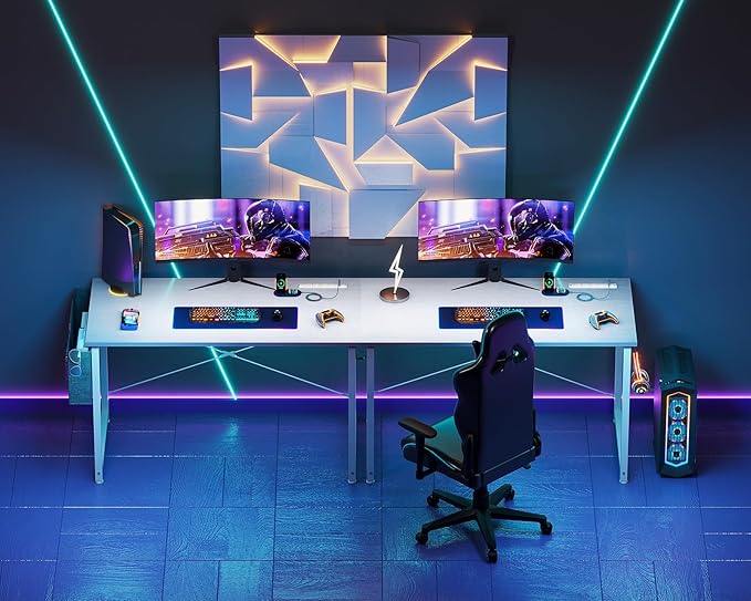 AODK 40 inch Small Computer Desk with Power Outlet for Small Spaces Home Office Student Laptop PC Writing Desks with Storage Bag Headphone Hook, White