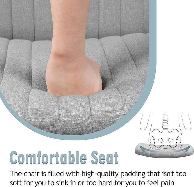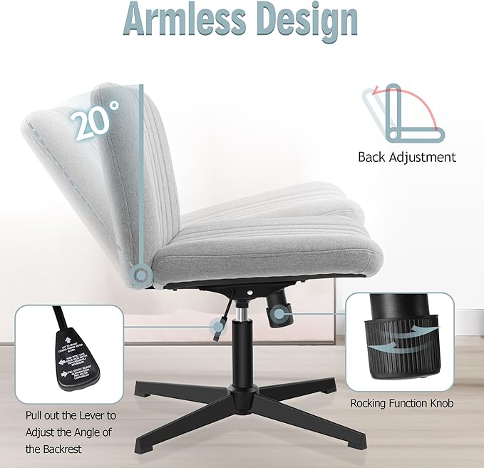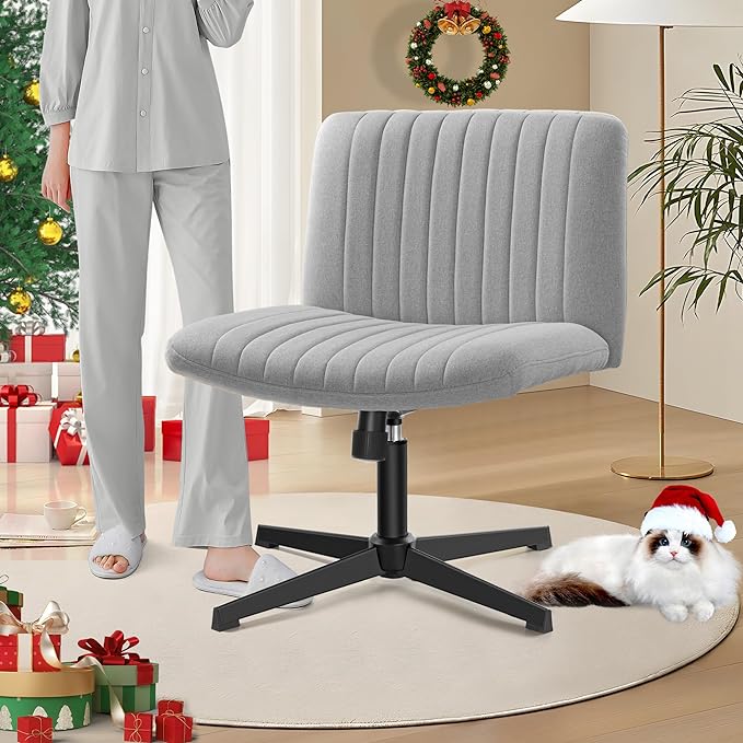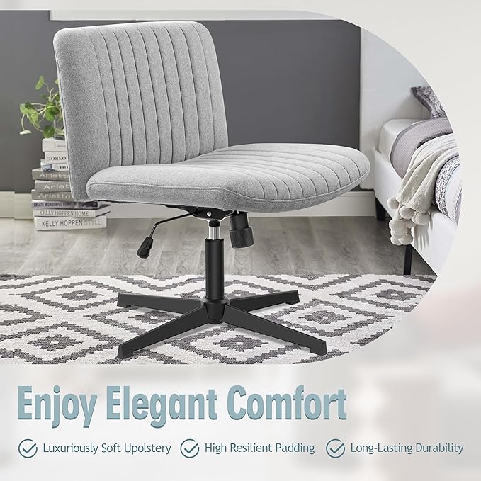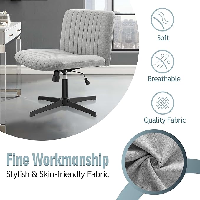 Armless Office Chair no Wheels, Ergonomic Wide Seat Swivel Desk Chair, Height Adjustable Cross Legged Comfortable Computer Chair for Living Room, Vanity Accent Chair LightGray