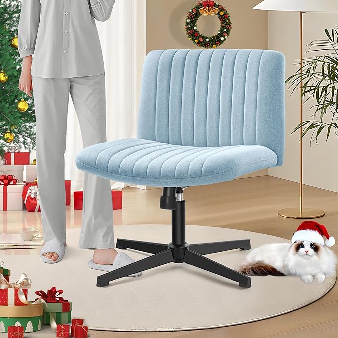 Armless Office Chair no Wheels, Ergonomic Wide Seat Swivel Desk Chair, Height Adjustable Cross Legged Comfortable Computer Chair for Living Room, Vanity Accent Chair LightBlue