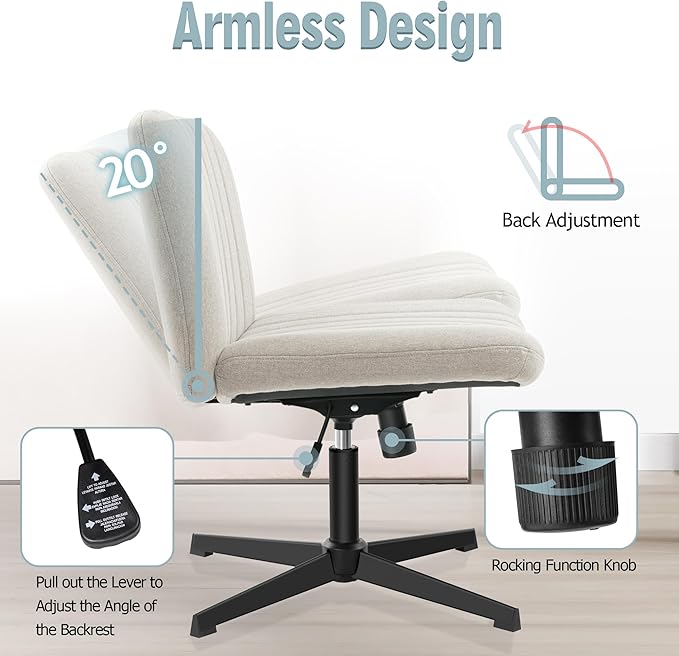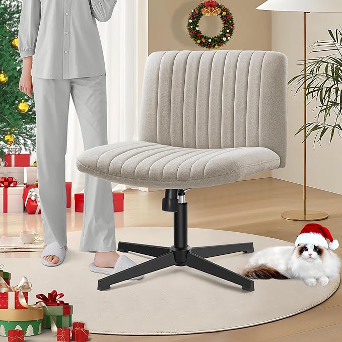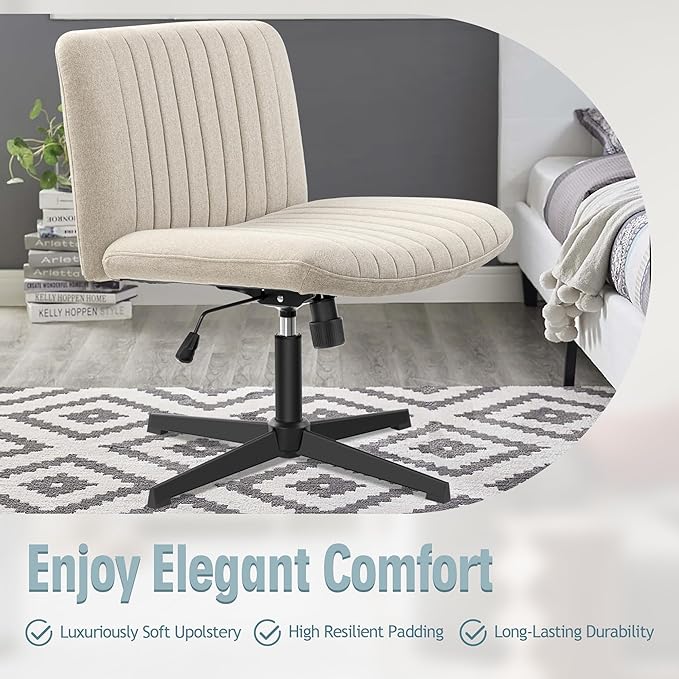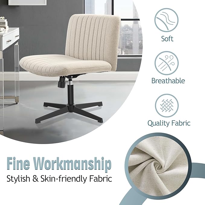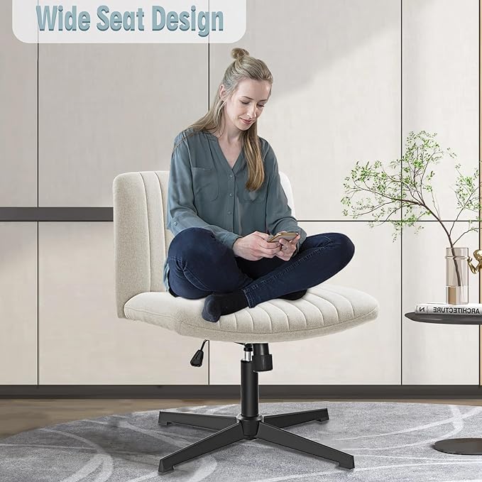 Armless Office Chair no Wheels, Ergonomic Wide Seat Swivel Desk Chair, Height Adjustable Cross Legged Comfortable Computer Chair for Living Room, Vanity Accent Chair Beige