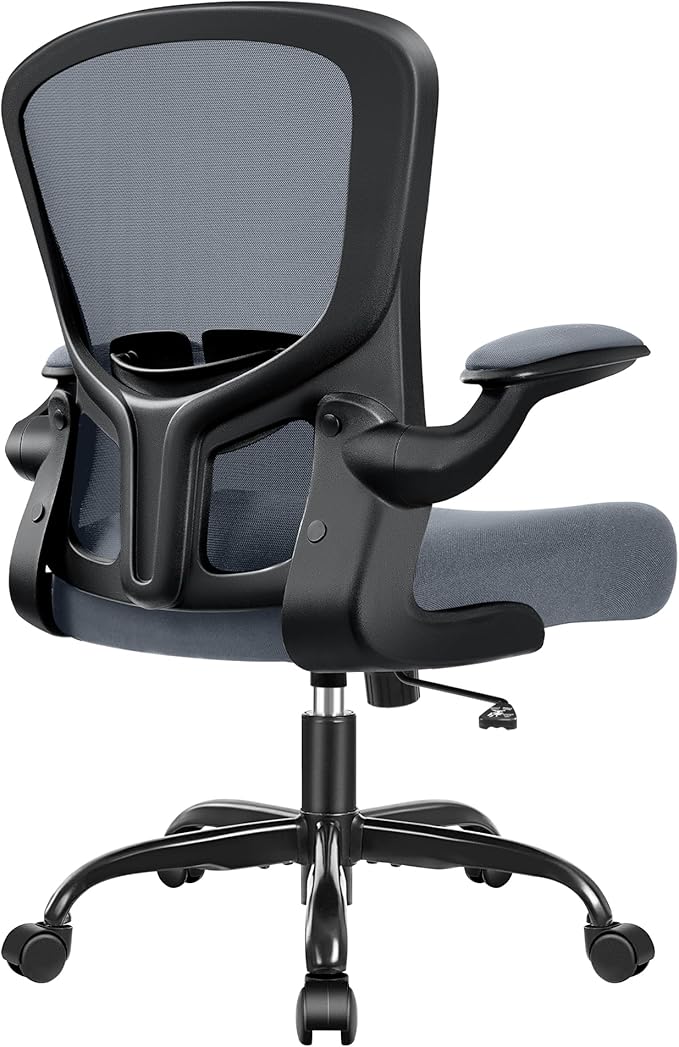 Ergonomic Office Chair, Lumbar Support Desk Chair with Flip-up Armrest and Breathable Mesh, Height Adjustable Swivel Office Chair Darkgray