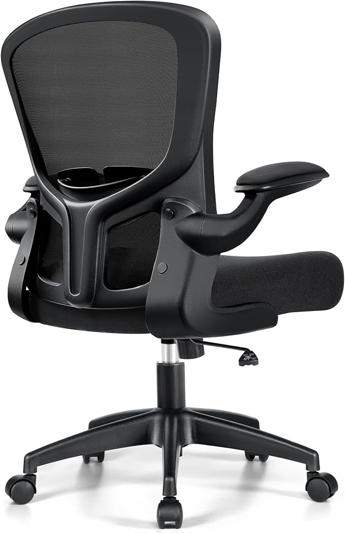 Office Chair, Ergonomic Desk Chair with Lumbar Support and Flip-up Armrest, Height Adjustable Mesh Swivel Computer Office Chair Black