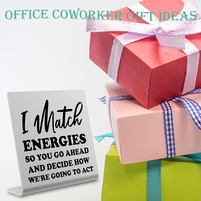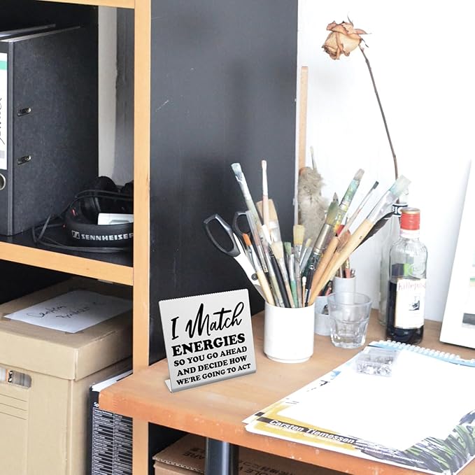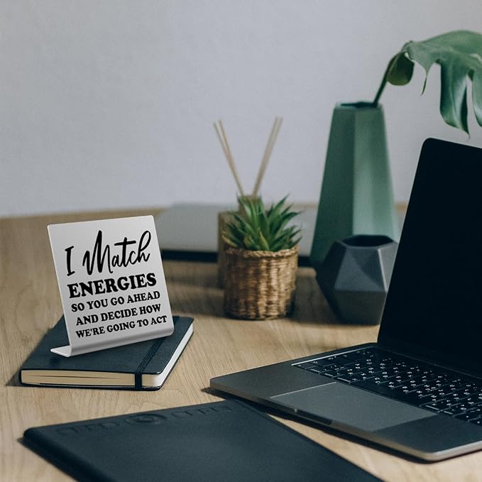 I Match Energies Office desk sign Appreciation Gifts for Leader Boss Mentor Teacher Boss Humor Leaving Card for Work Friend Farewell Gifts for Coworkers bookshelf Decor Desk Accessories DKG28