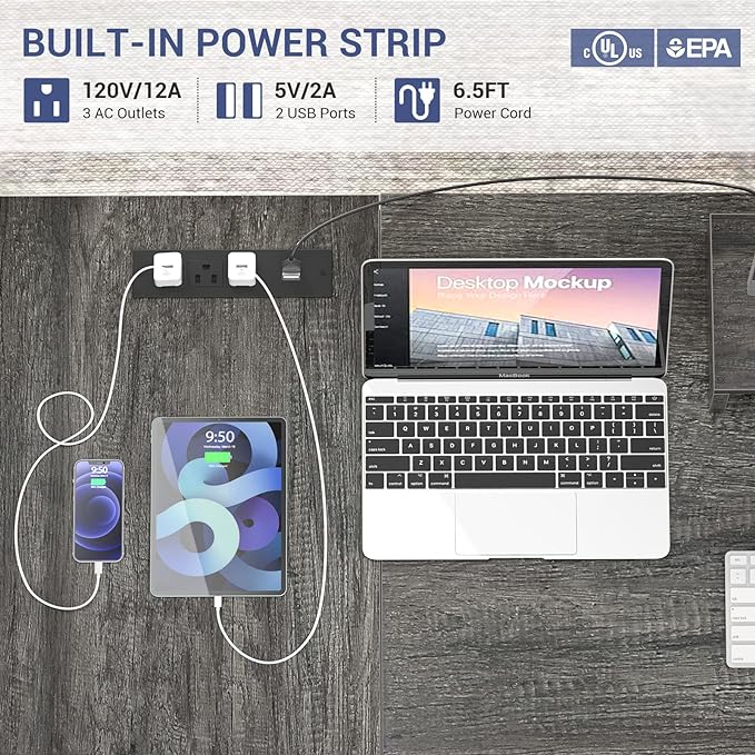 About This 【L Desk with Power Outlets& USB Ports】The small L-shaped computer desk comes with 3 Outlets& 2 USB ports,...