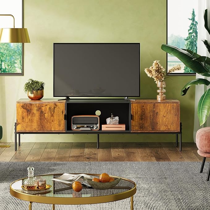 WLIVE Modern TV Stand for 65 Inch TV, Mid Century Entainment Center with Storage, TV Console with Open Shelf and 2 Cabinets for Bedroom and Living Room, TV Cabinet with Metal Legs, Rustic Brown