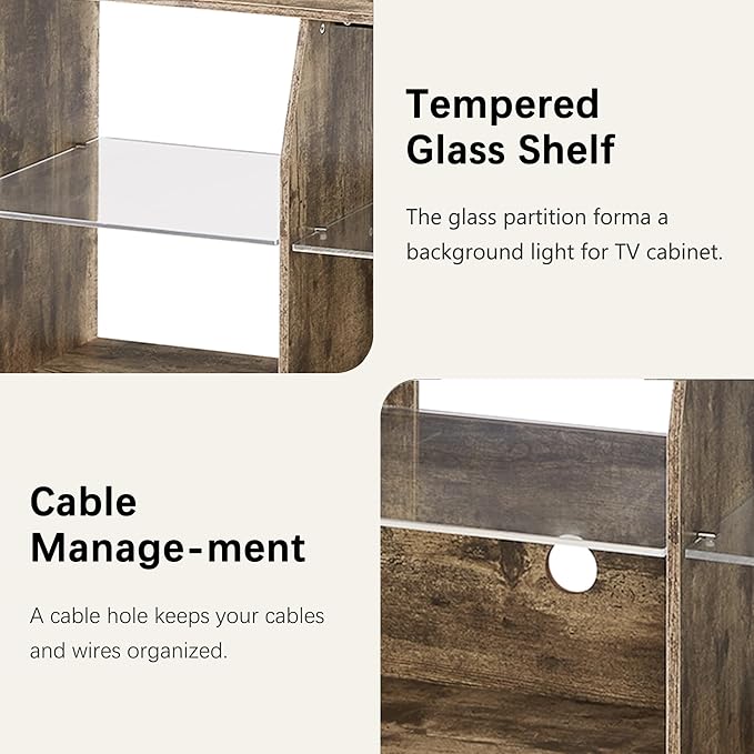 About This Wood 【Abundant LED lights】Industrial TV stands has a variety of colors of lights, creating a vivid gaming entertainment...