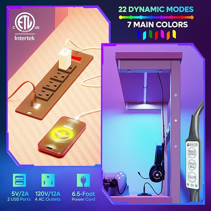 About This 【PC Gaming Desk with Power Outlet】 Bestier PC desk features 4 AC outlets + 2 USB charing ports....