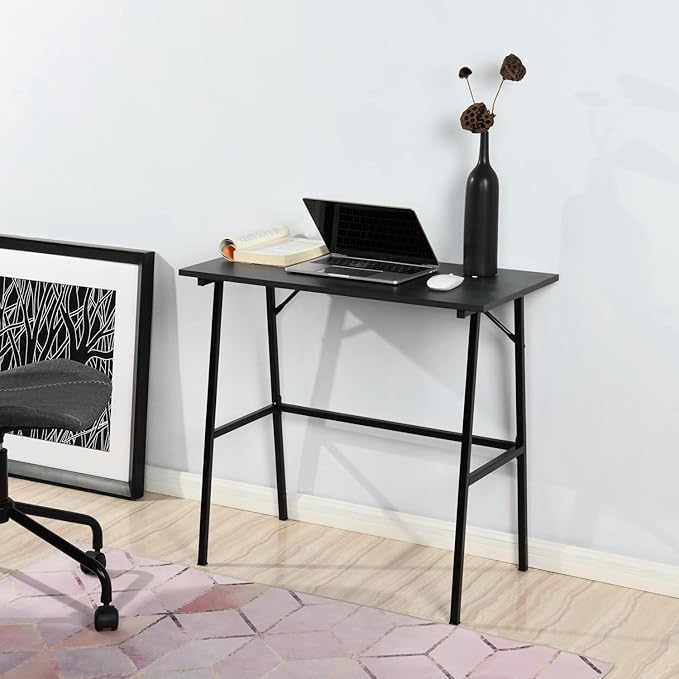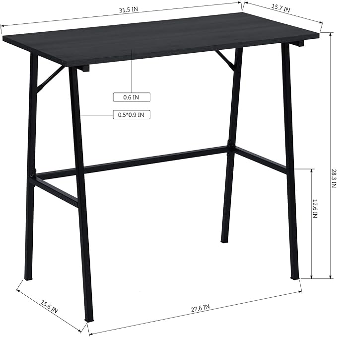 FurnitureR Home Office Computer Desk, Compact Writing Desk Study Desk with Metal Frame for Apartment, Dorm, Bedroom, Small Space (31.5 Inch, Black)