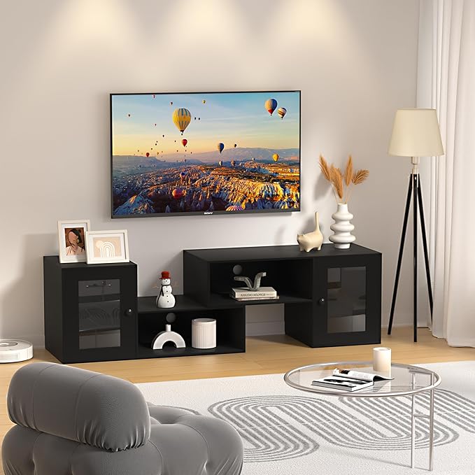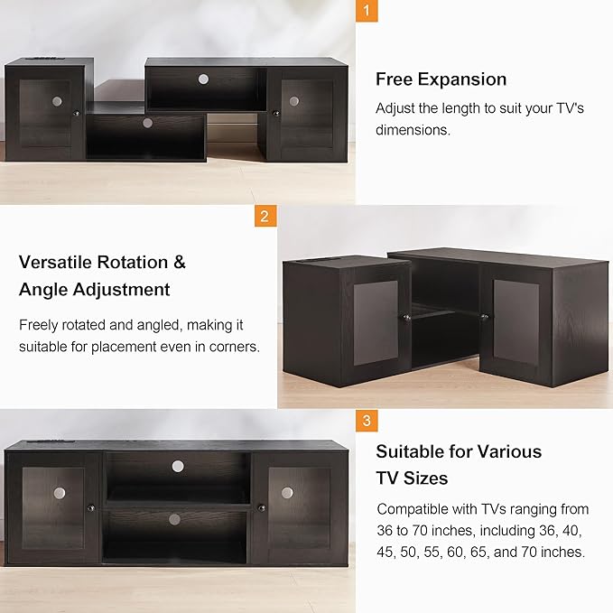 About This Deformable TV Stand: VECELO living room tv stand has three assembled shapes for living room, bedroom. Place the...