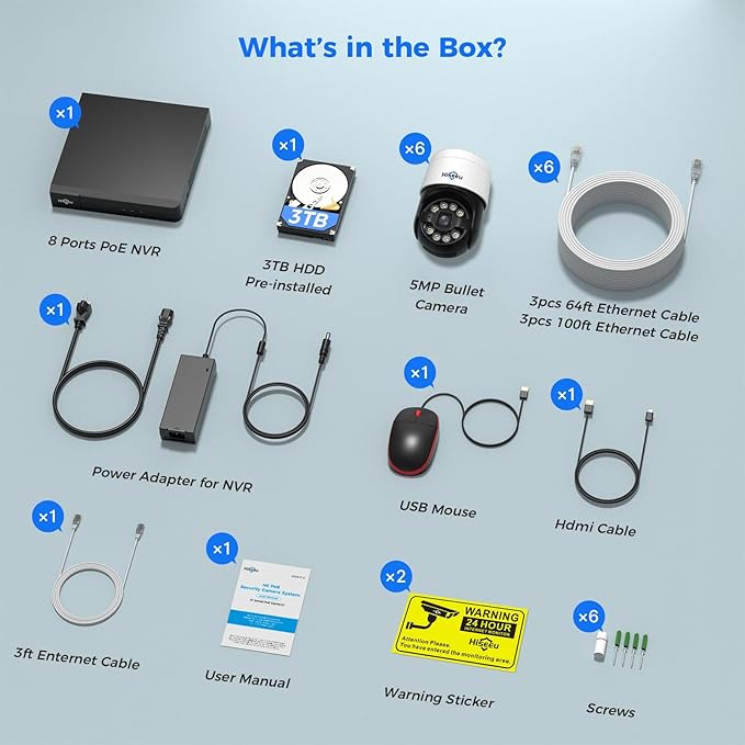 [300°Pan 90°Tilt+Human Tracking] Hiseeu 4K PoE PTZ Camera System,NVR Security Camera System w/6Pcs 5MP Wired Security Camera Outdoor&Indoor,2-Way Audio,Waterproof,7/24 Record for Home Surveillance