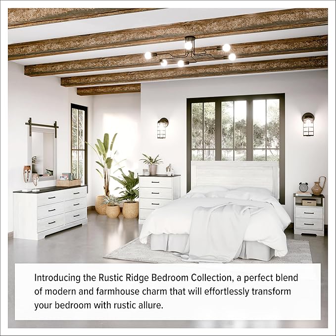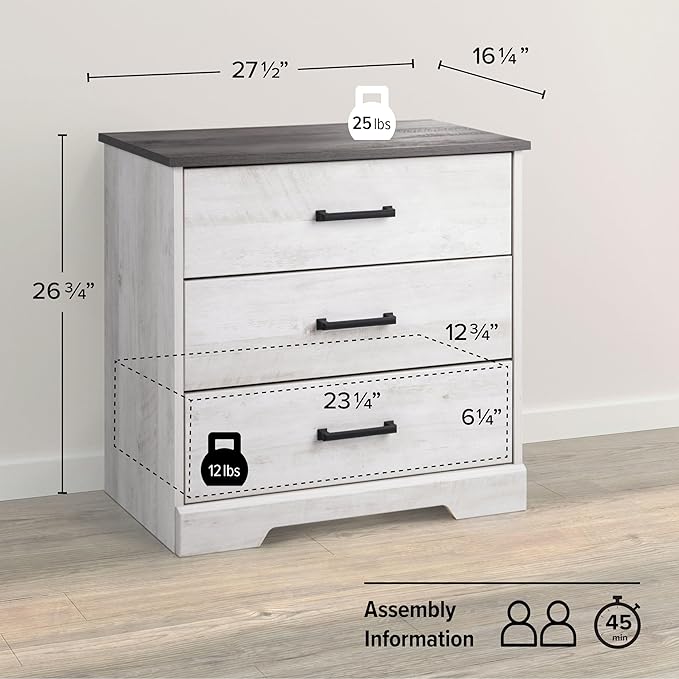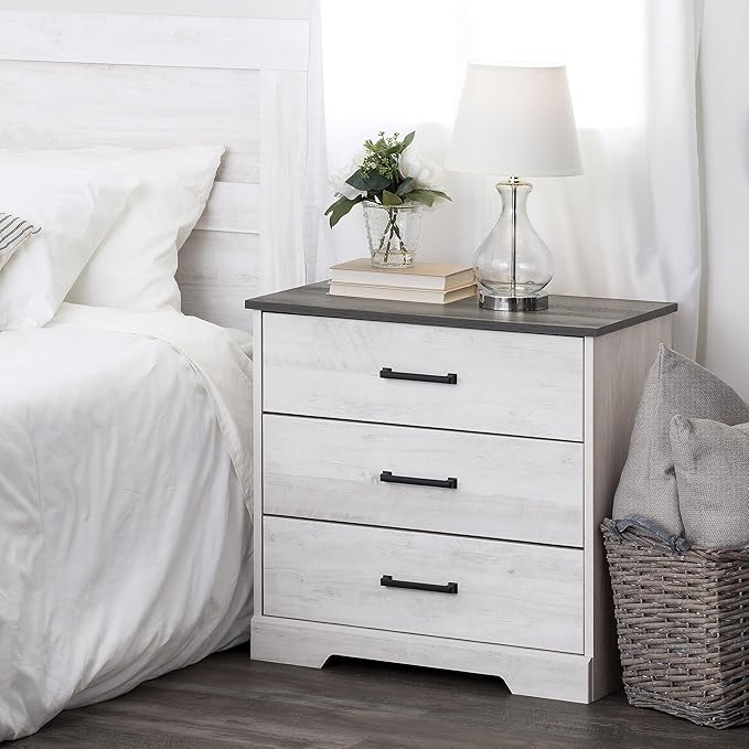 Prepac Rustic Ridge Farmhouse 3-Drawer Nightstand, Washed White, ADNR-1603-1