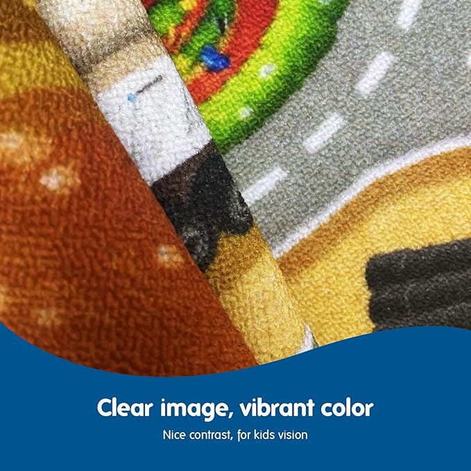 About This Vibrant Design: Our construction-themed rug features a colorful and detailed cityscape with roads, buildings, construction vehicles, and more....