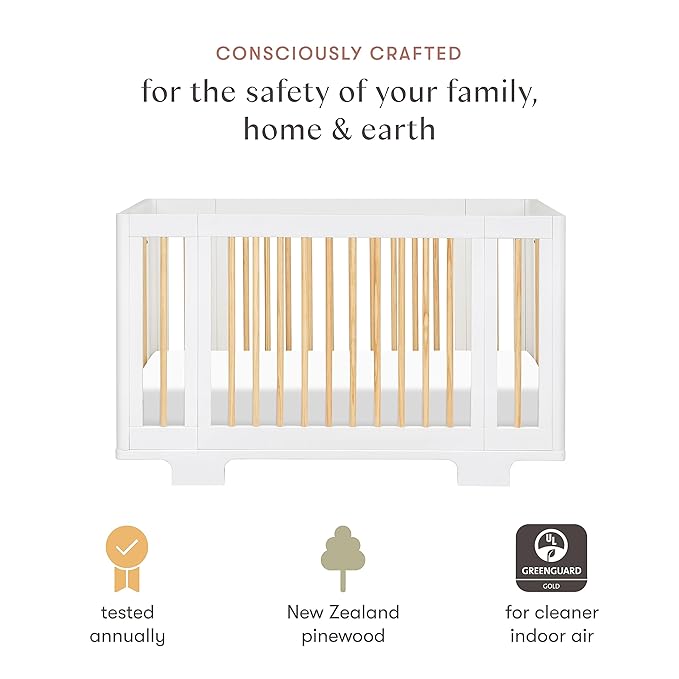Babyletto Yuzu Convertible All-Stages Bassinet, Midi, Full-Size Crib in White with Natural, Greenguard Gold Certified, Portable & Adjustable with Conversion Kits and Pads Included