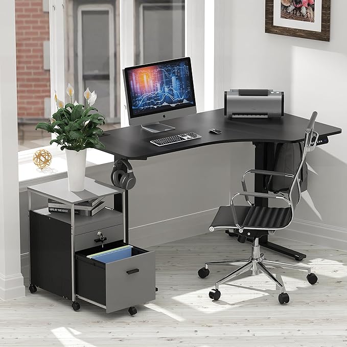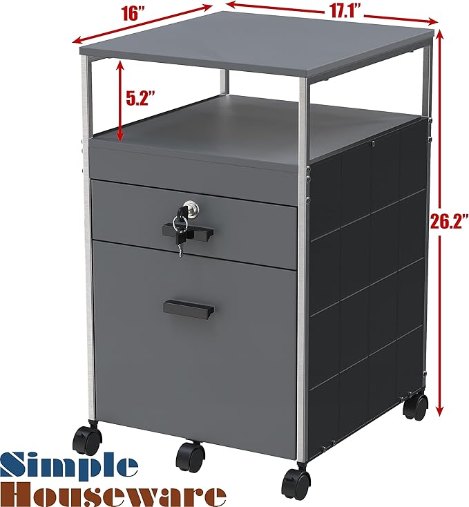 About This Rolling File Cabinet saves space in home office, dorm room. One lockable drawer and one haning file drawer...