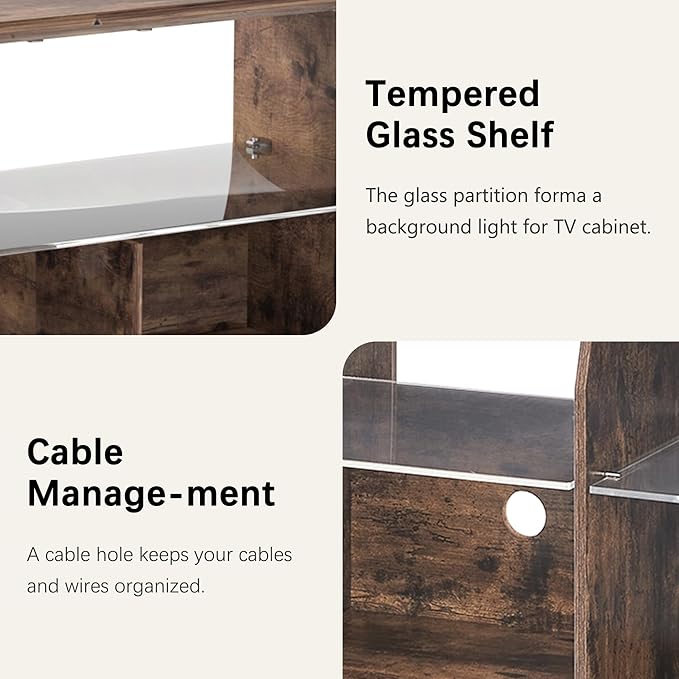 About This Wood 【Abundant LED lights】Industrial TV stands has a variety of colors of lights, creating a vivid gaming entertainment...