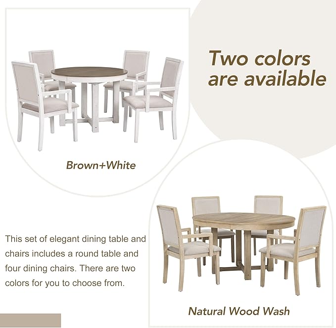 About This Solid Wood [5-Piece Dining Table Set]:This elegant table and chair set includes an expandable round table and 4...