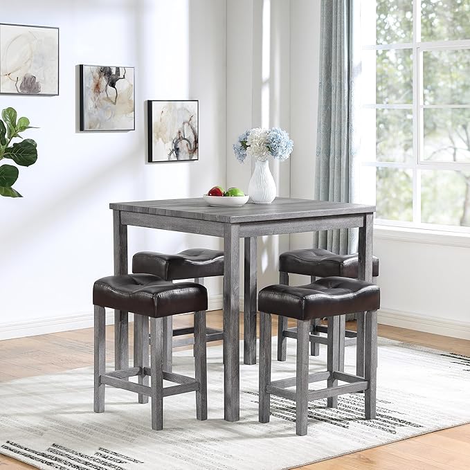 About This Solid Wood 【5 Pcs Industrial Dining Bar Table Set】The small table and chairs showcase clean lines and wooden...