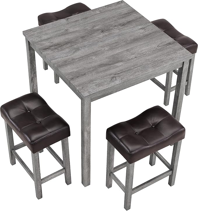 Home Kitchen 5 Piece Dining Set, Breakfast Tables with 4 Padded Stools, Industrial Bar Dinette Furniture for Living Room, Apartment, Space-Saving Design, Brown+Gray