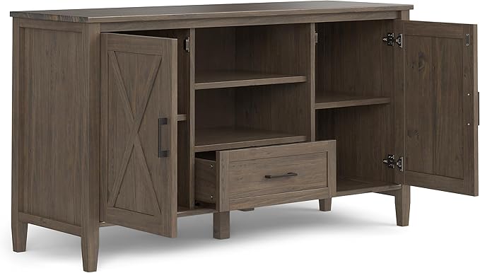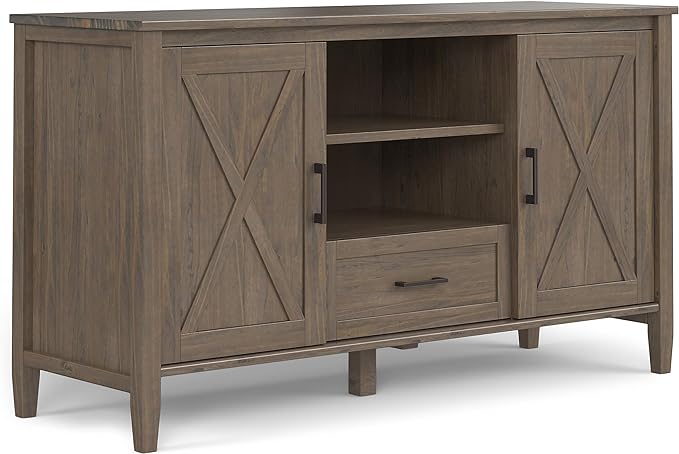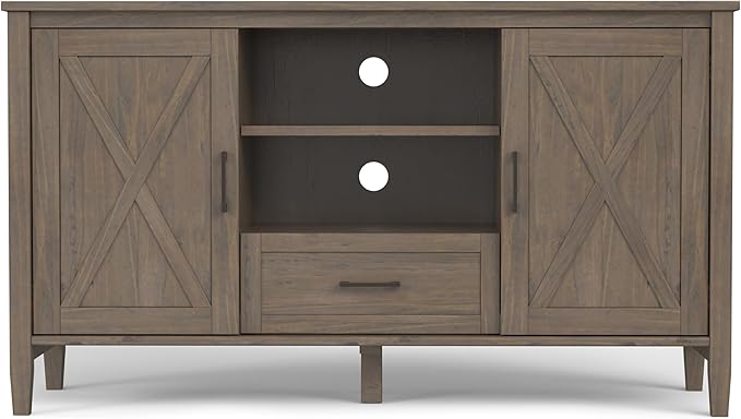 SIMPLIHOME Ela SOLID WOOD Wide Transitional Media Stand for TVs up to 60 inches for The Living Room and Entertainment Center, 53 inch, Smoky Brown