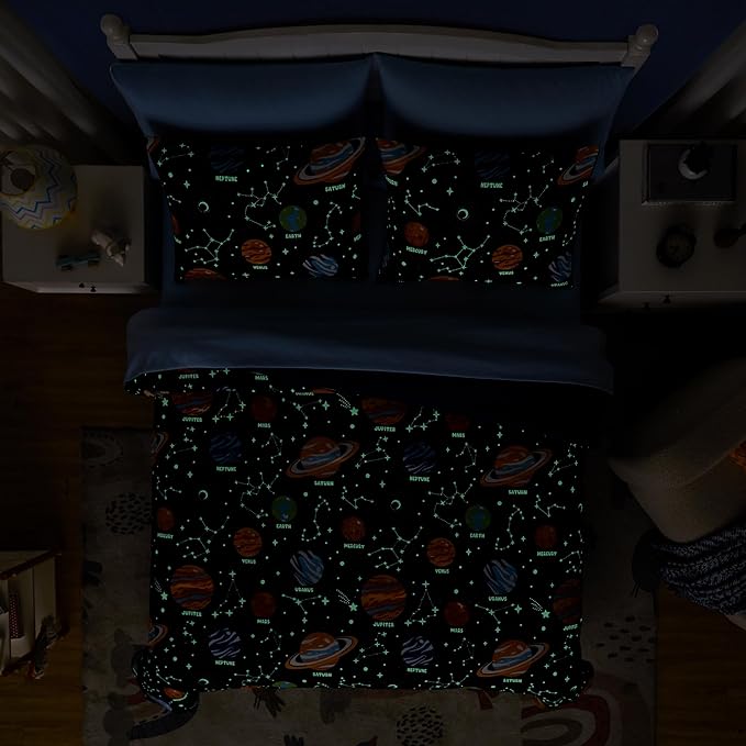 About This 【Glow in the Dark Design】This outer space comforter set is a great idea that adds excitement and style...