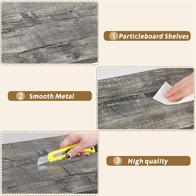 melos 4 Tier Bookshelf, Industrial Bookcase, Large Etagere Bookshelf Open Display Shelves with Metal Frame and 2 Anti-Tipping Strap, Grey