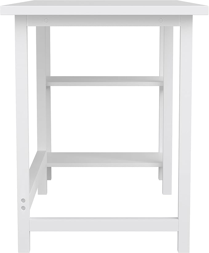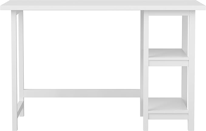 Martha Stewart Beckett Modern Trestle Desk with Open Side Shelving in White Wood Grain Finish
