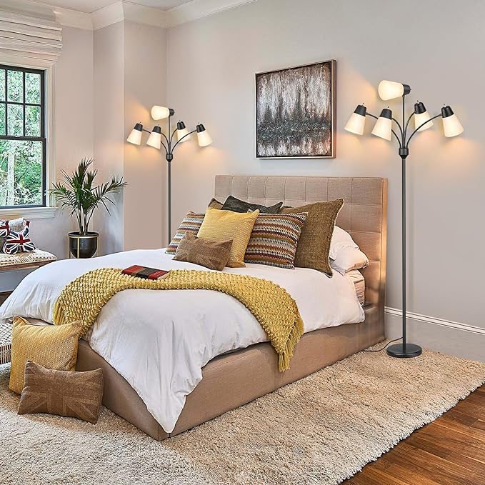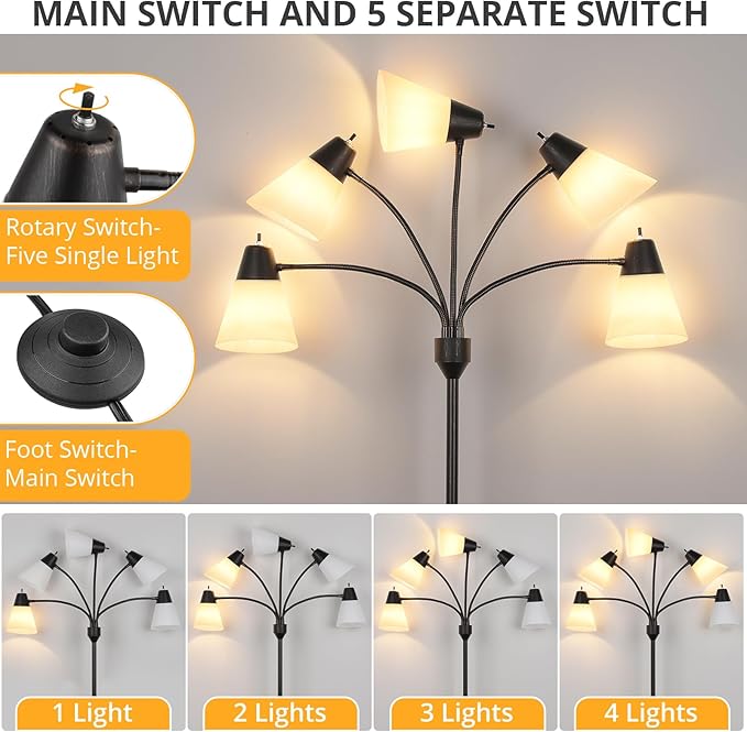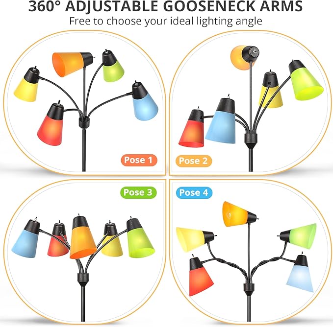 About This Five adjustable Gooseneck Arms: This tall floor lamp comes with flexible gooseneck arms that allow for great flexibility...