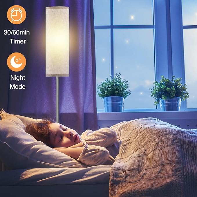 Floor Lamp for Living Room Bedroom, Modern Floor Lamp with Remote,Stepless Dimmable 12W Bulb Included,Nickel Pole and Beige Linen lampshade