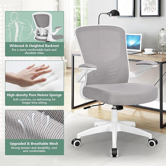 MINLOVE Office Chair Ergonomic Desk Chair with Lumbar Support and Height, Rolling Swivel Desk Chair with Wheels and Flip-up Arms, Breathable Mesh Executive Computer Chair for Home Office(Gray)