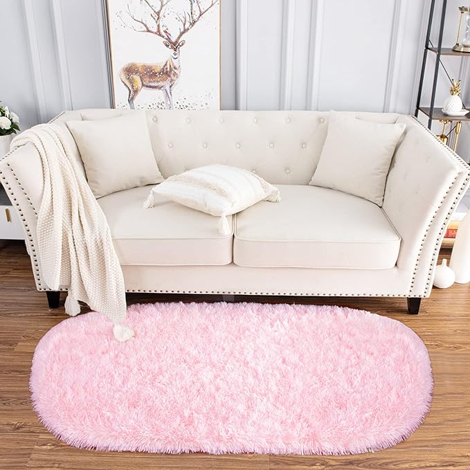 Noahas Fluffy Pink Rugs for Bedroom Girls,2'X 5' Oval Ultra Soft Bedroom Rugs,Cute Small Throw Rugs, Kids Room Carpet Modern Shaggy Area Rugs Home Decor
