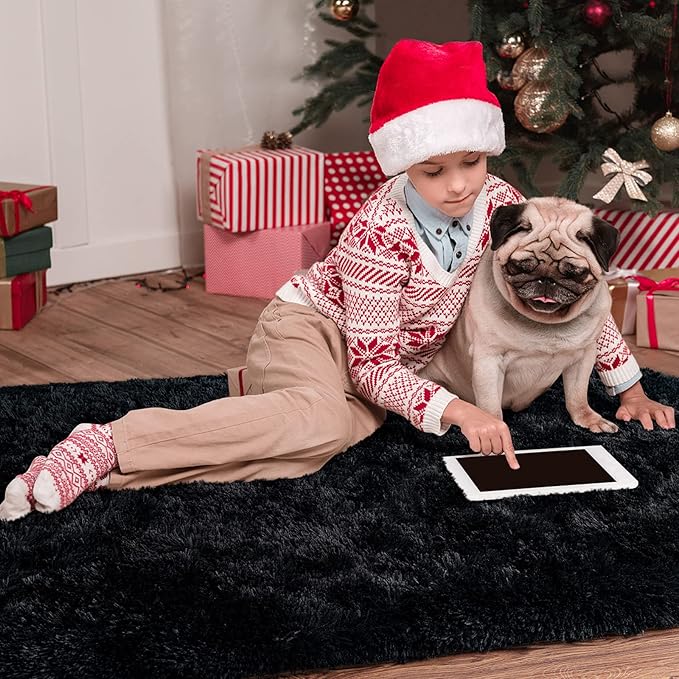 Noahas Black Fluffy Rugs for Bedroom,2'X 5' Oval Ultra Soft Bedroom Rugs,Small Throw Rugs, Kids Room Carpet Modern Shaggy Area Rugs Home Decor